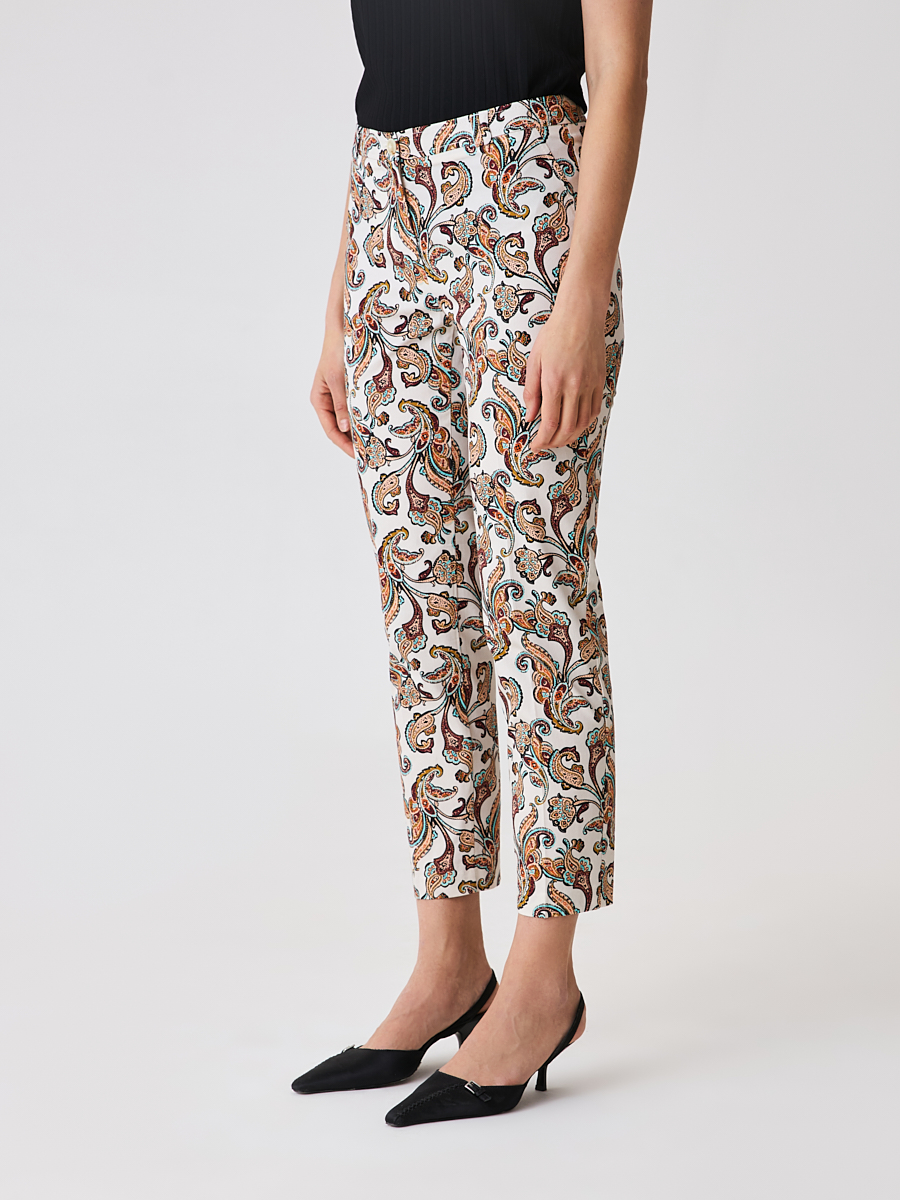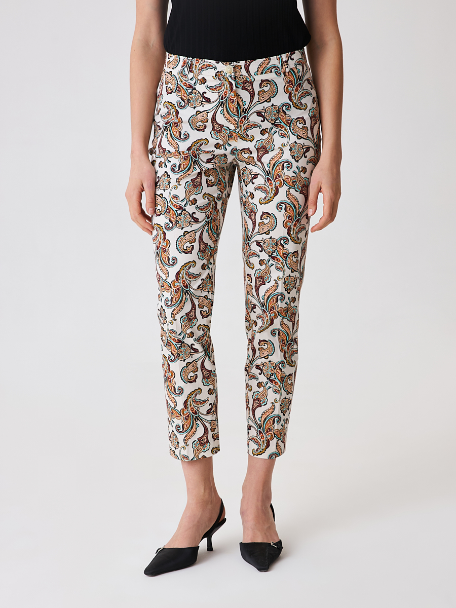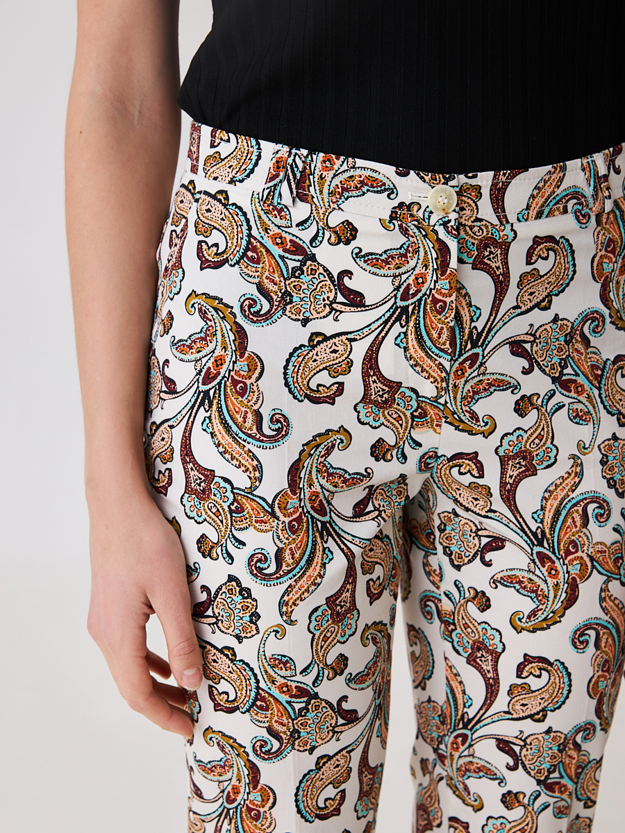 Укороченные зауженные брюки 7/8 с ярким принтом. Заутюженные стрелки и средняя посадка. Выполнены из легкой ткани. Станут ярким акцентом в вашем образе.