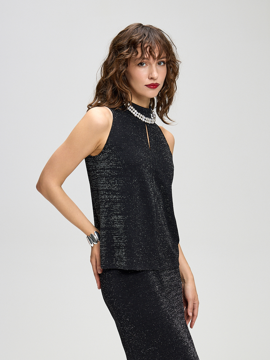 Данная модель станет отличным дополнением базового гардероба. Изделие выполнено из мягкого качественного трикотажа, приятного к телу. Высокий полуприлегающий воротник на контрасте с открытыми плечами делает образ более интересным и утонченным. Лаконичность модели позволяет стилизовать блузу под большое количество образов, а универсальная длина обеспечивает комфортную носку как в заправленном виде, так и навыпуск.